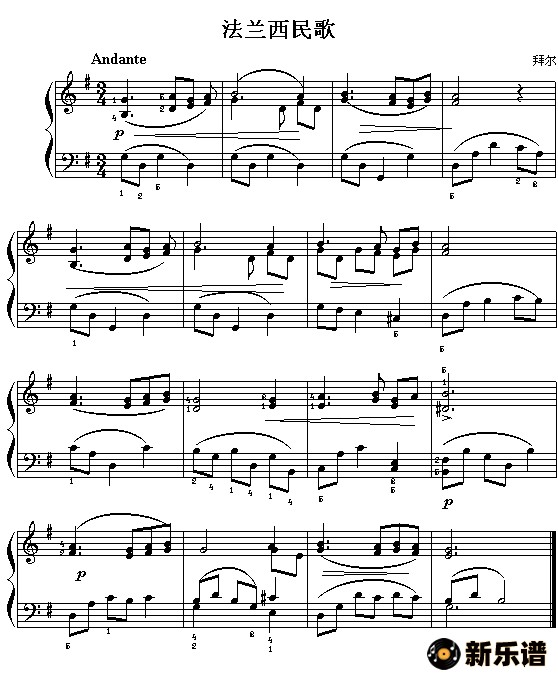 演唱的法兰西民歌(拜耳)歌词,法兰西民歌(拜耳)钢琴谱.