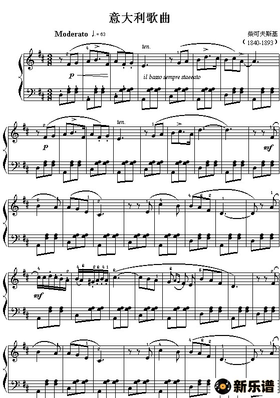 演唱的意大利歌曲(老柴)歌词,意大利歌曲(老柴)钢琴谱.