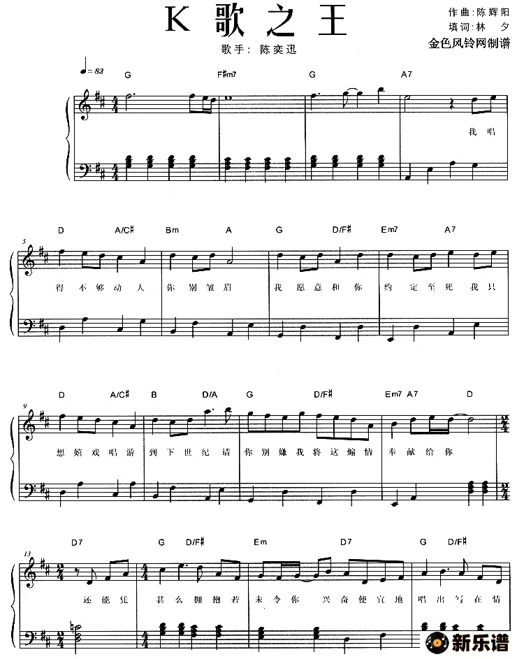 陈奕迅演唱的K歌之王歌词,K歌之王钢琴谱.