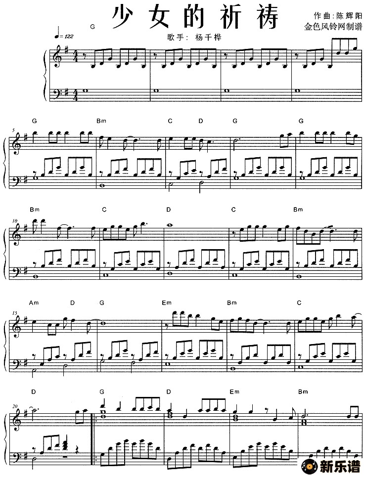 杨千桦演唱的少女的祈祷歌词,少女的祈祷钢琴谱.