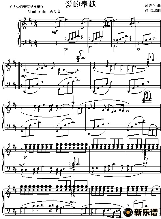 韦唯演唱的爱的奉献歌词,爱的奉献钢琴谱.