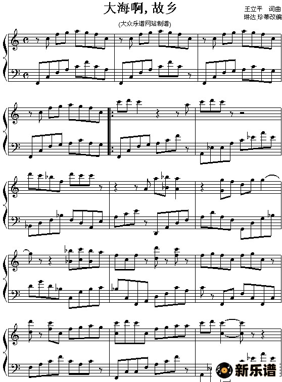 大海啊,故乡(影片《大海在呼唤》主题歌》)最新曲谱