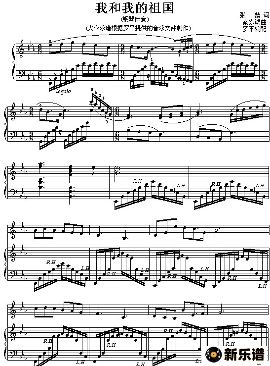 > 我和我的祖国钢琴谱
