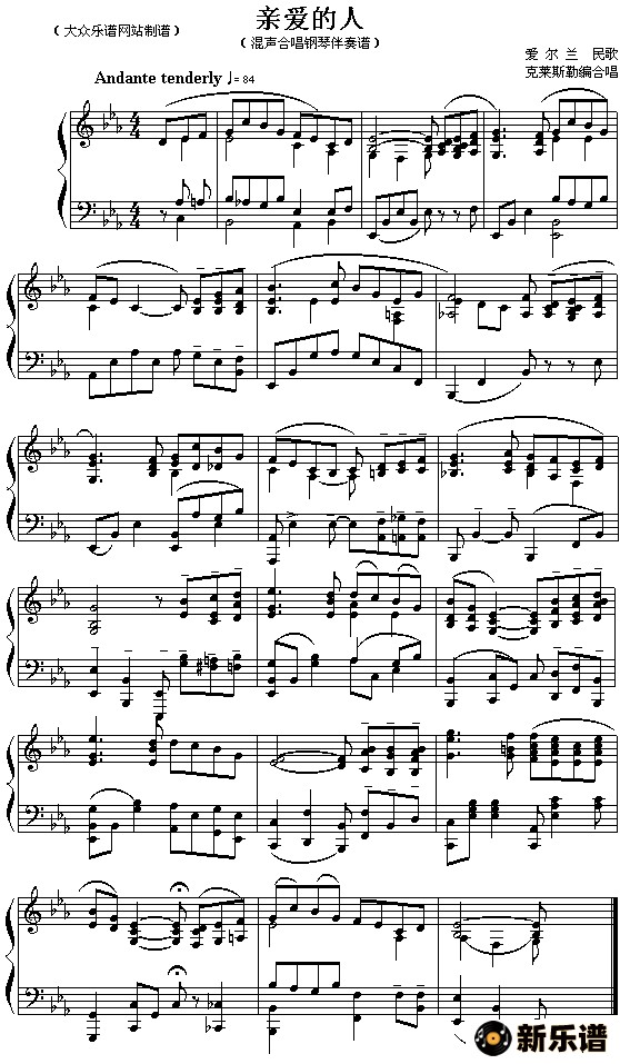 演唱的亲爱的人(爱尔兰民歌)歌词,亲爱的人(爱尔兰民歌)钢琴谱.