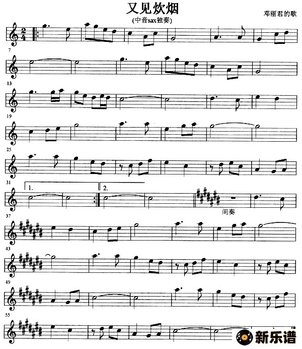 邓丽君演唱的又见炊烟歌词,又见炊烟钢琴谱.