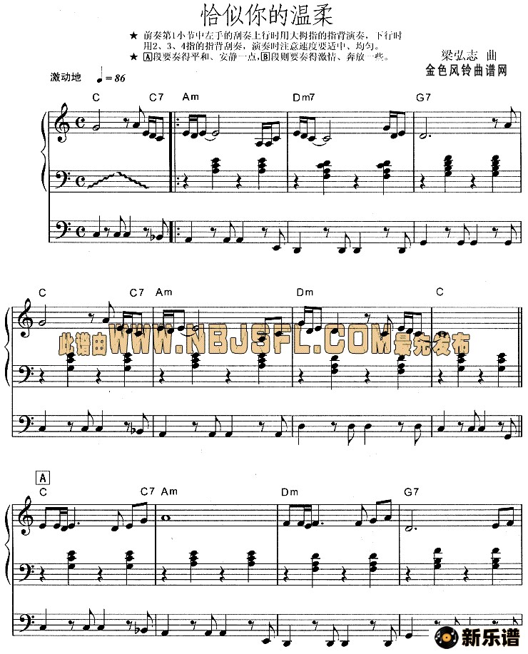 邓丽君演唱的恰似你的温柔歌词,恰似你的温柔钢琴谱.