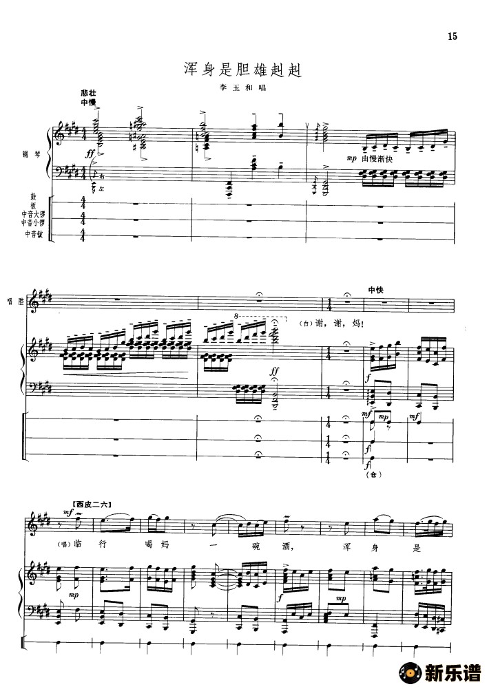 《浑身是胆雄纠纠(钢琴伴唱)》钢琴谱 钱浩梁