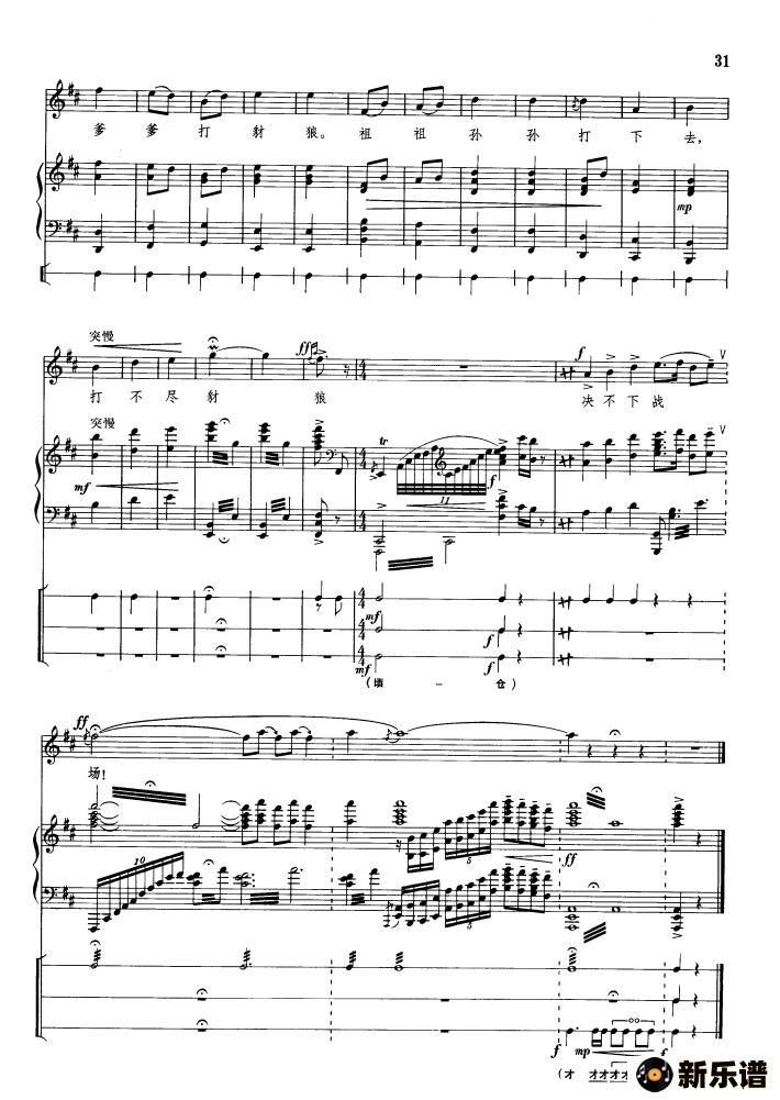 > 打不尽豺狼决不下战场(钢琴伴唱)钢琴谱