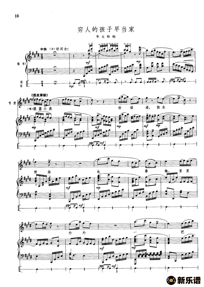 > 穷人的孩子早当家(钢琴伴唱)钢琴谱