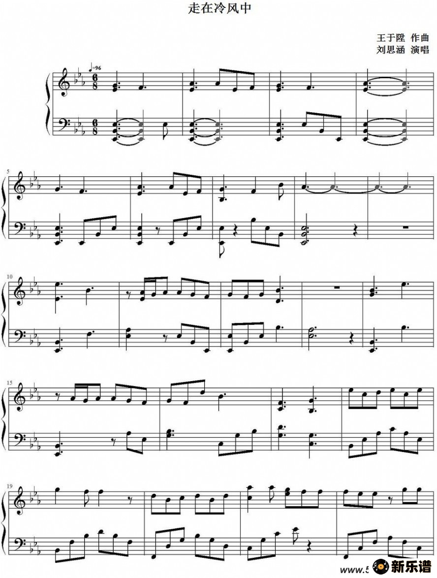 刘思涵演唱的走在冷风中歌词,走在冷风中钢琴谱.