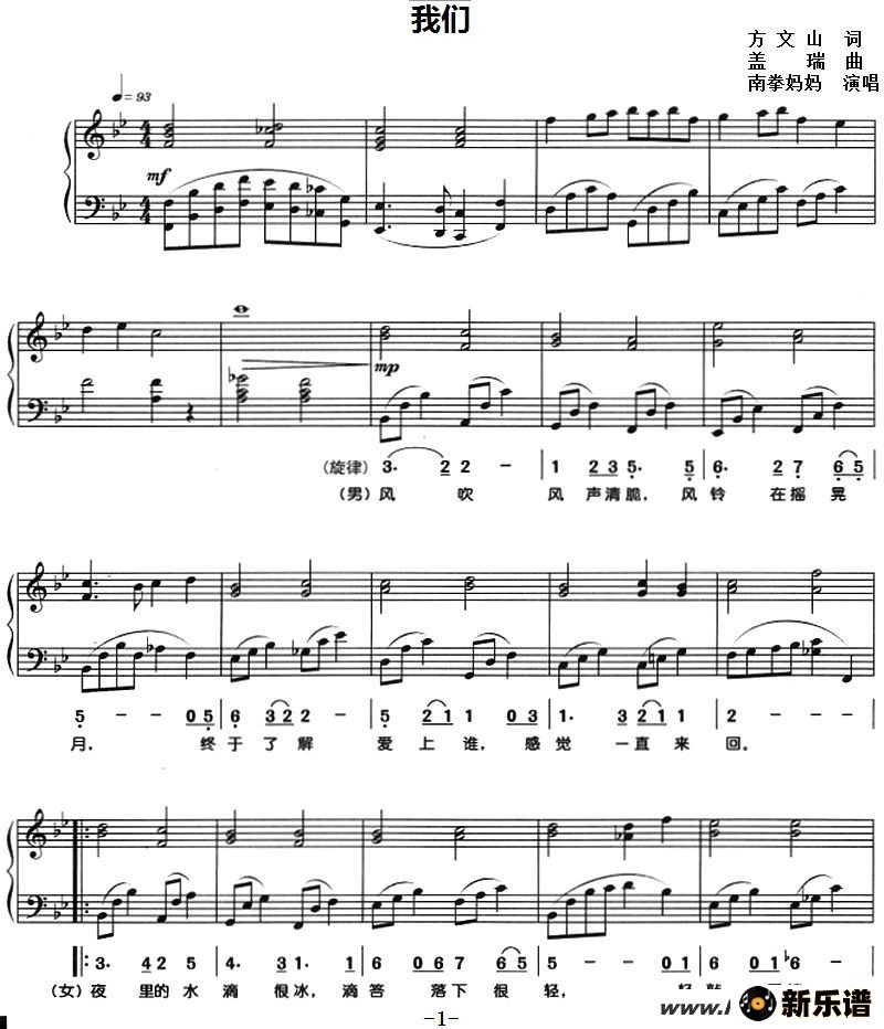 南拳妈妈演唱的我们歌词,我们钢琴谱.