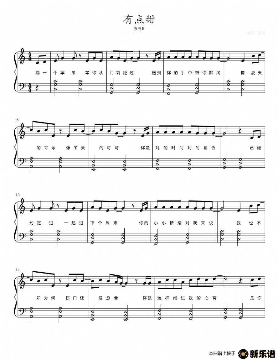 汪苏泷&BY2演唱的有点甜歌词,有点甜钢琴谱.