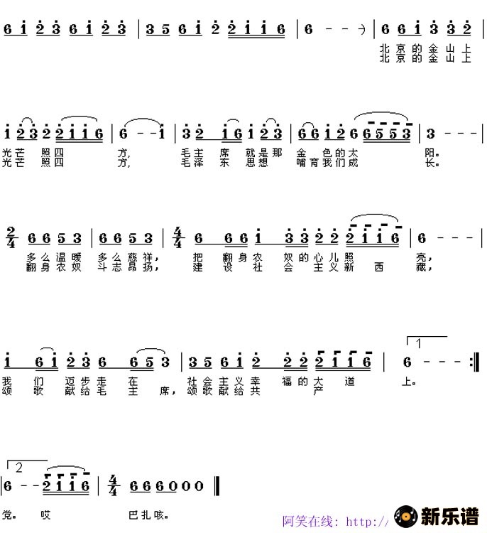才旦卓玛演唱的北京的金山上歌词,北京的金山上简谱.