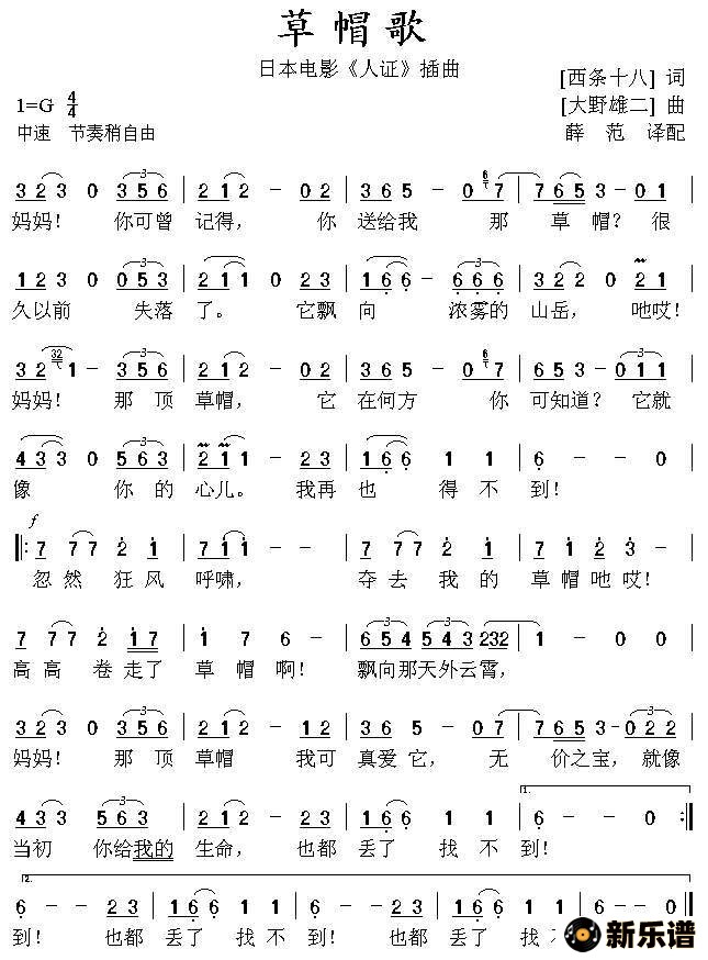 草帽歌演唱的草帽歌歌词,草帽歌简谱.