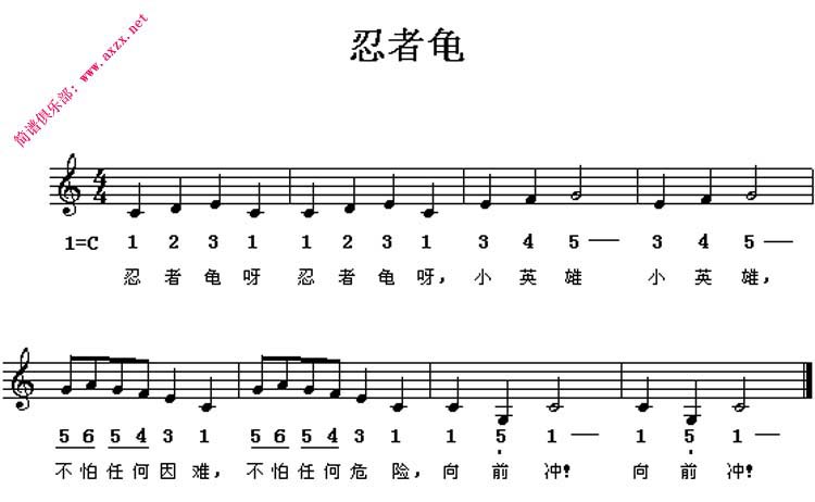 演唱的忍者龟 小英雄歌词,忍者龟 小英雄简谱.