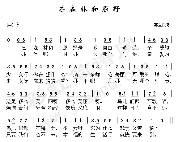 > 在森林和原野简谱