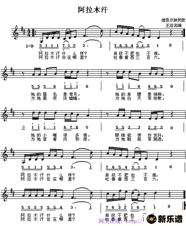 胡松华演唱的阿拉木汗歌词,阿拉木汗简谱.