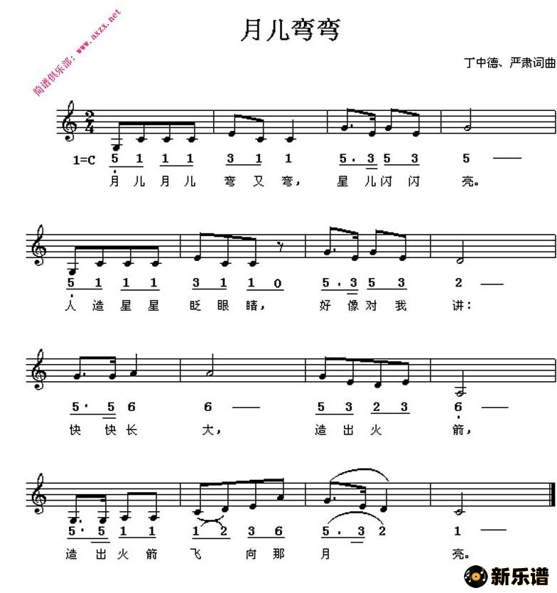 演唱的月儿弯弯歌词,月儿弯弯简谱.