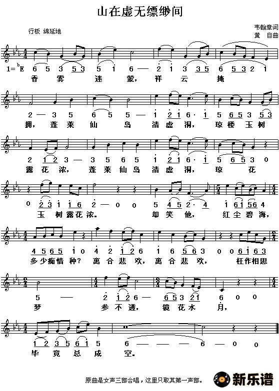 演唱的山在虚无飘渺间歌词,山在虚无飘渺间简谱.