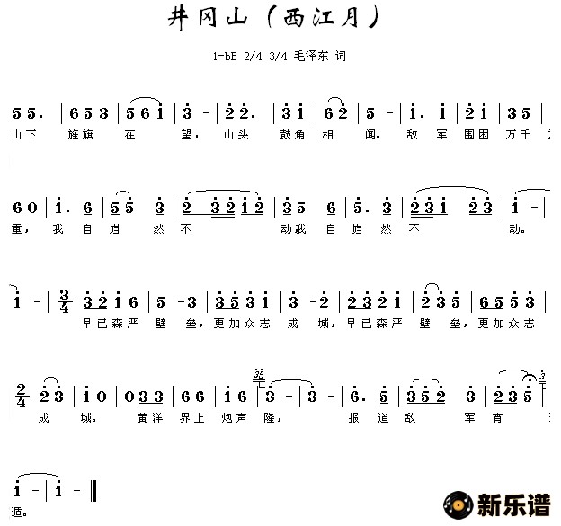 演唱的井冈山(西江月)歌词,井冈山(西江月)简谱.
