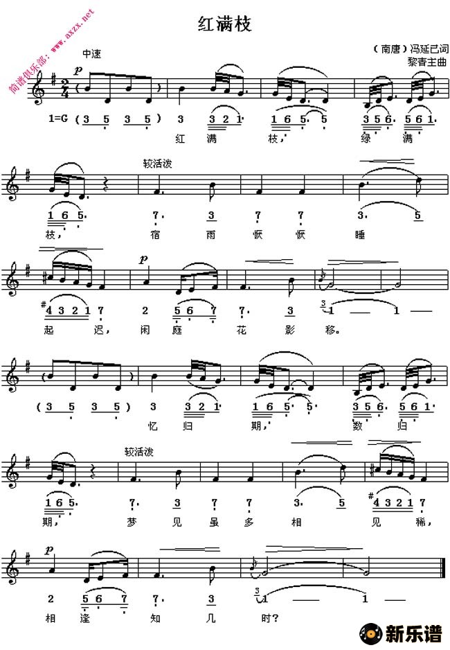 《红满枝》简谱
