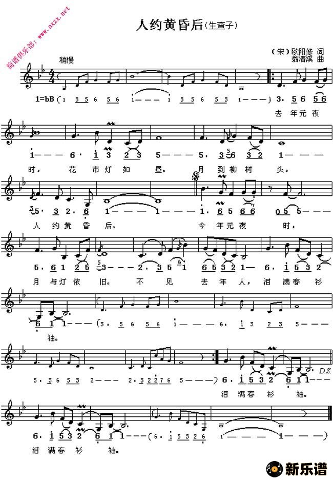 演唱的人约黄昏后歌词,人约黄昏后简谱.