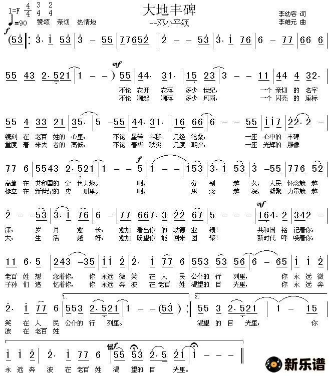 演唱的大地丰碑—邓小平颂歌词,大地丰碑—邓小平颂简谱.
