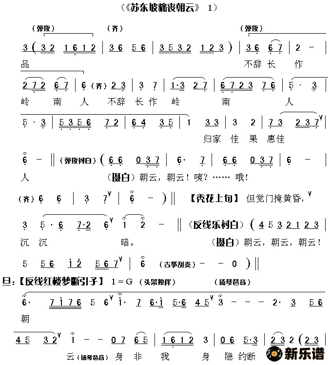 演唱的苏东坡痛丧朝云2歌词,苏东坡痛丧朝云2简谱.