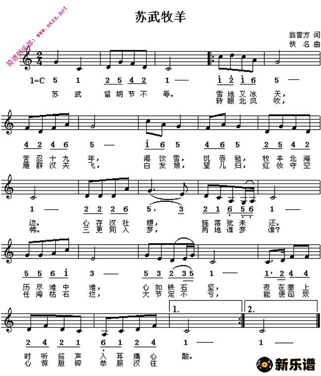 演唱的苏武牧羊歌词,苏武牧羊简谱.
