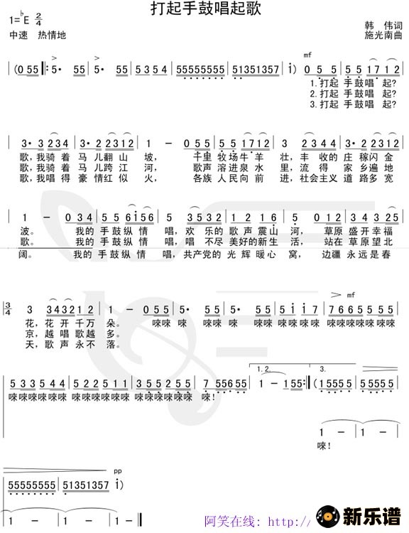 关牧村演唱的打起手鼓唱起歌歌词,打起手鼓唱起歌简谱.