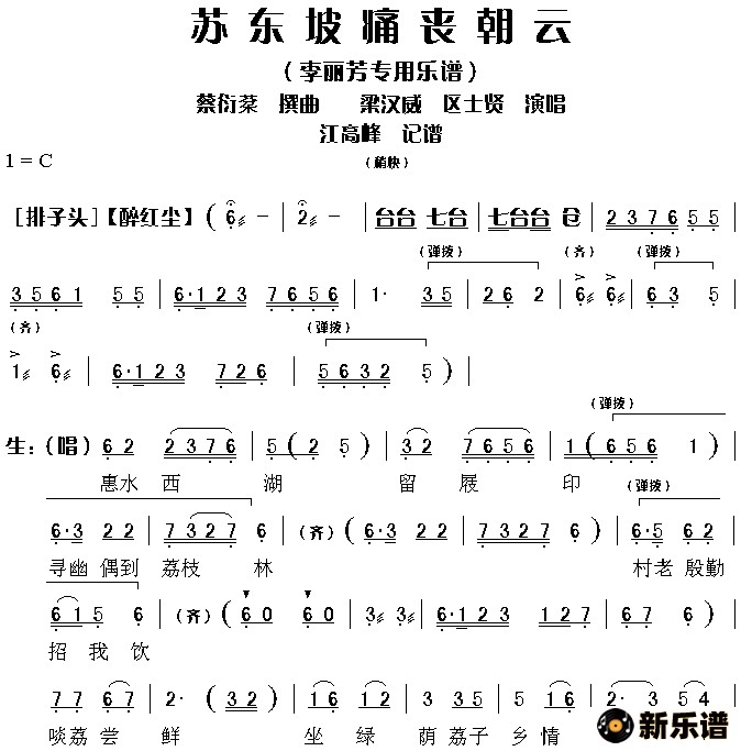演唱的苏东坡痛丧朝云歌词,苏东坡痛丧朝云简谱.