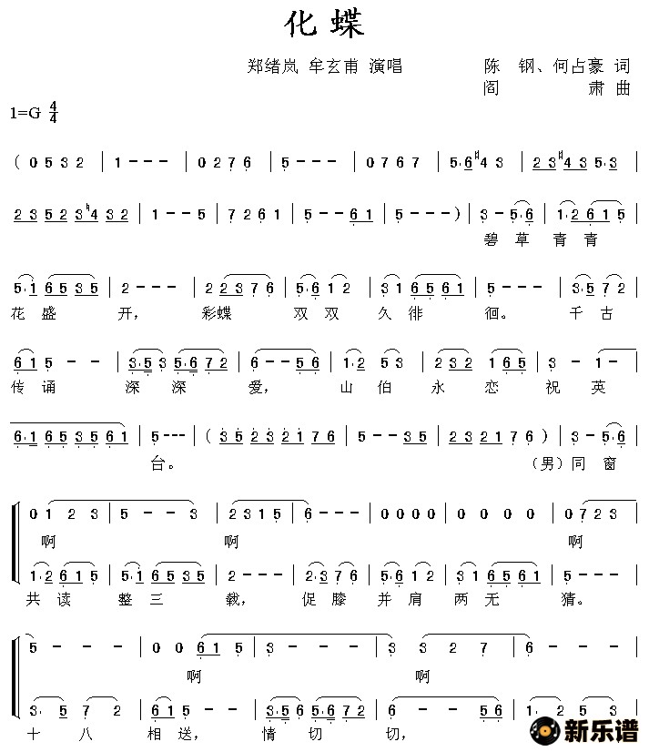 《化蝶》简谱 郑绪岚