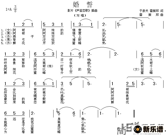 张振富 耿莲凤演唱的婚誓歌词,婚誓简谱.