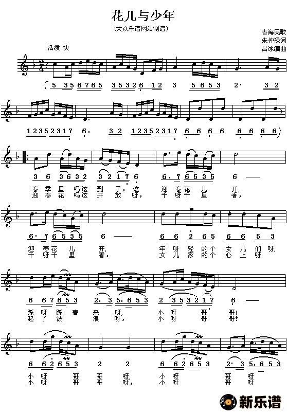 演唱的花儿与少年歌词,花儿与少年简谱.