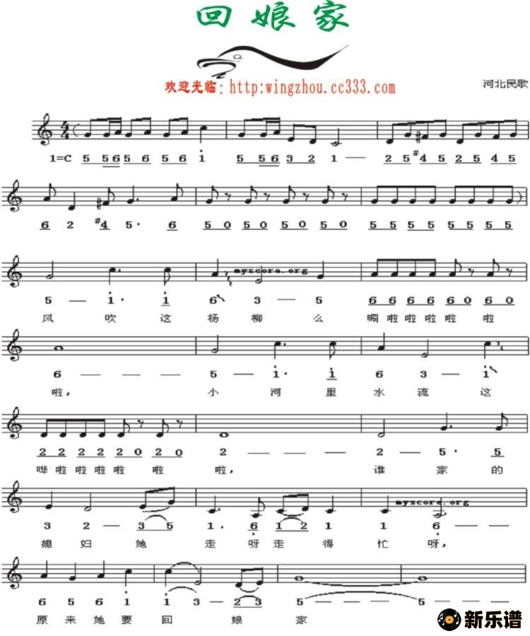 朱明英演唱的回娘家(河北民歌)歌词,回娘家(河北民歌)简谱.