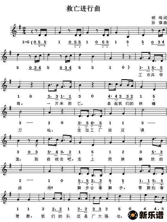 演唱的救亡进行曲歌词,救亡进行曲简谱.