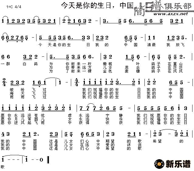 演唱的今天是你的生日,中国歌词,今天是你的生日,中国简谱.