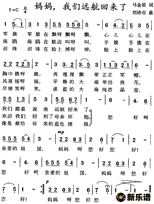 演唱的妈妈我们远航回来了歌词,妈妈我们远航回来了简谱.