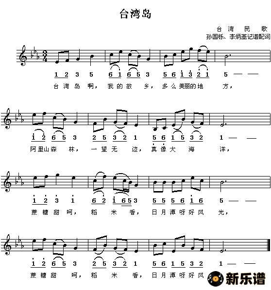 > 台湾岛简谱