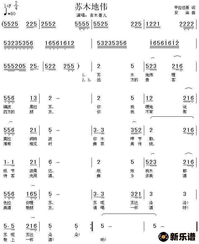 吉木喜儿演唱的苏木地伟歌词,苏木地伟简谱.