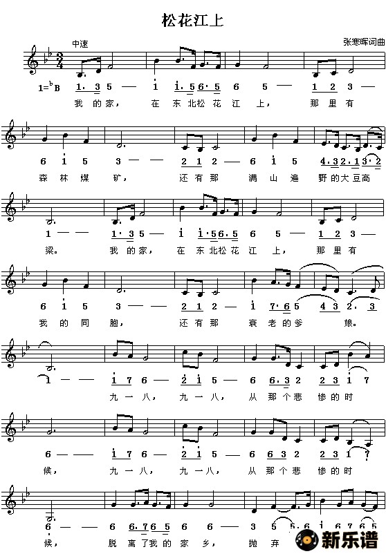 思乡--电视剧《松花江上》片尾曲最新曲谱