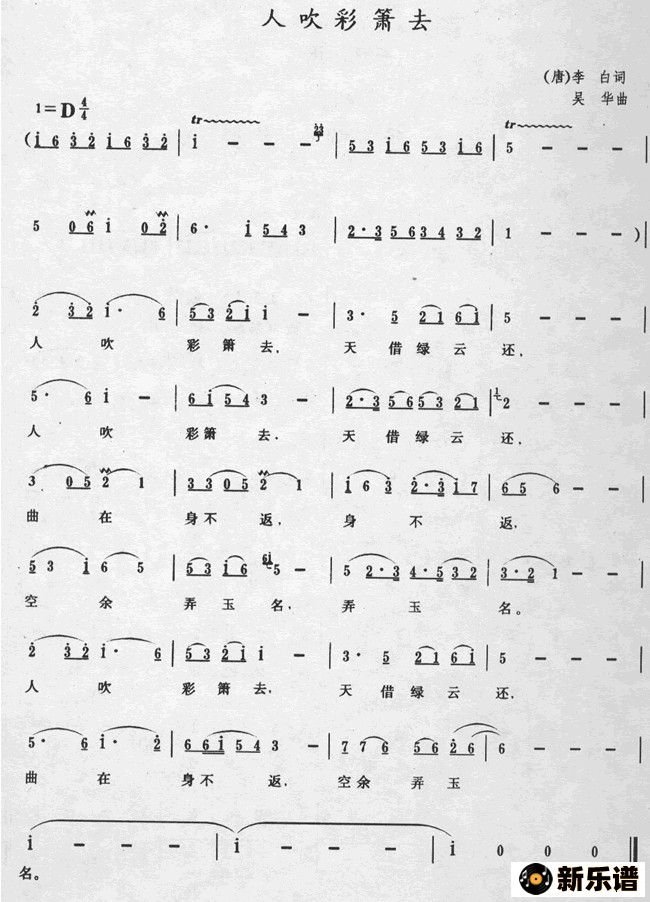 演唱的人吹彩箫去歌词,人吹彩箫去简谱.
