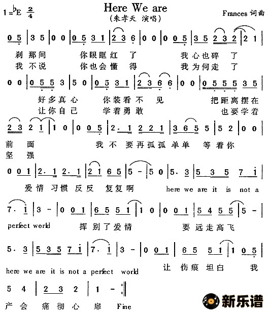 朱孝天演唱的Here We are歌词,Here We are简谱.