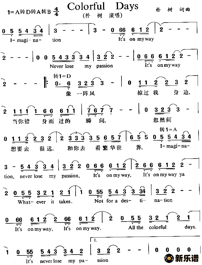 朴树演唱的Colorful Days歌词,Colorful Days简谱.