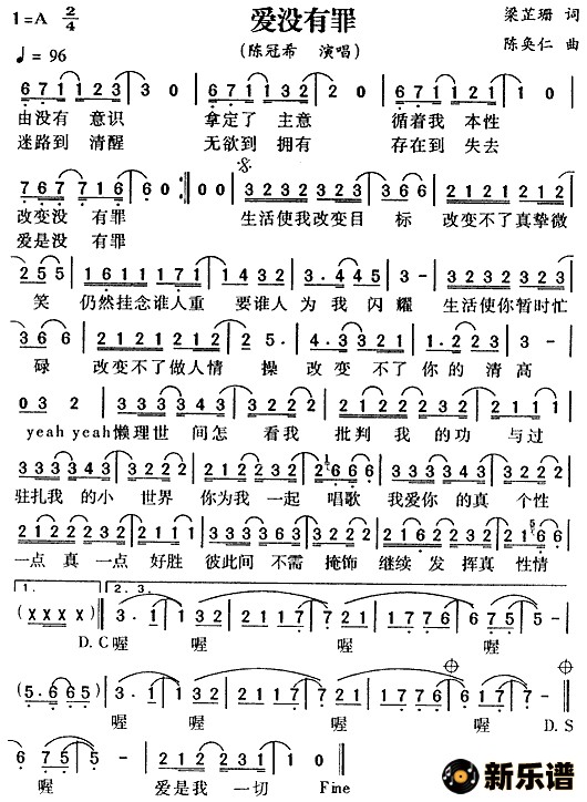 陈冠希演唱的爱没有罪歌词,爱没有罪简谱.