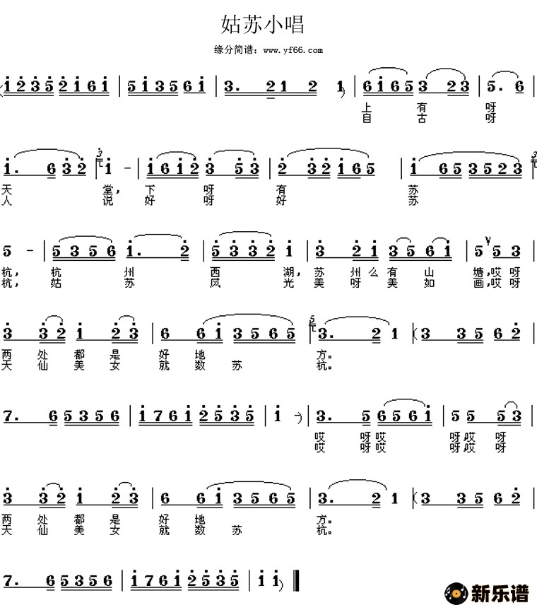 江苏民歌演唱的姑苏小唱歌词,姑苏小唱简谱.