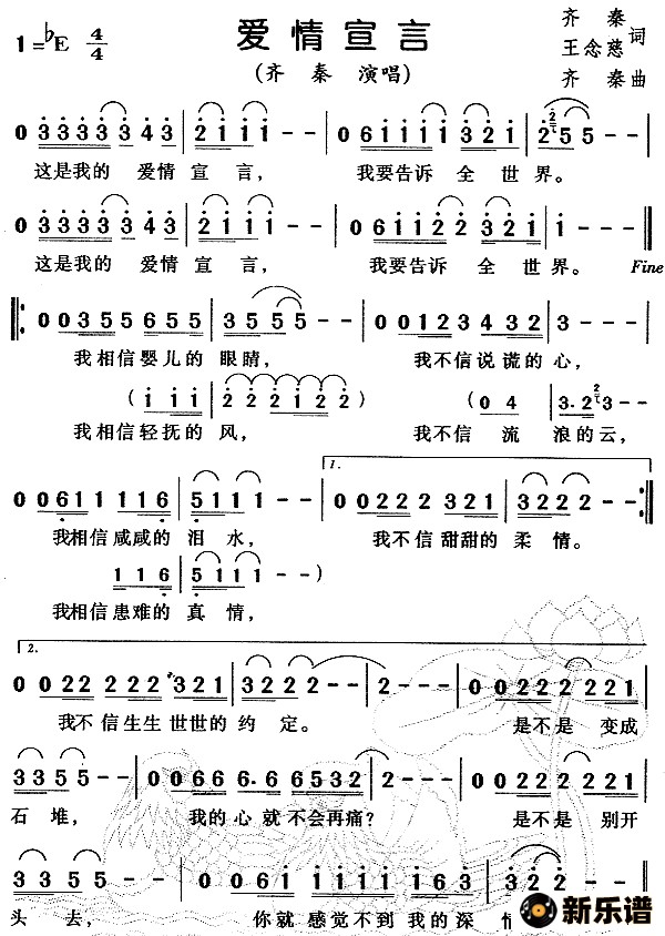 齐秦演唱的爱情宣言歌词,爱情宣言简谱.