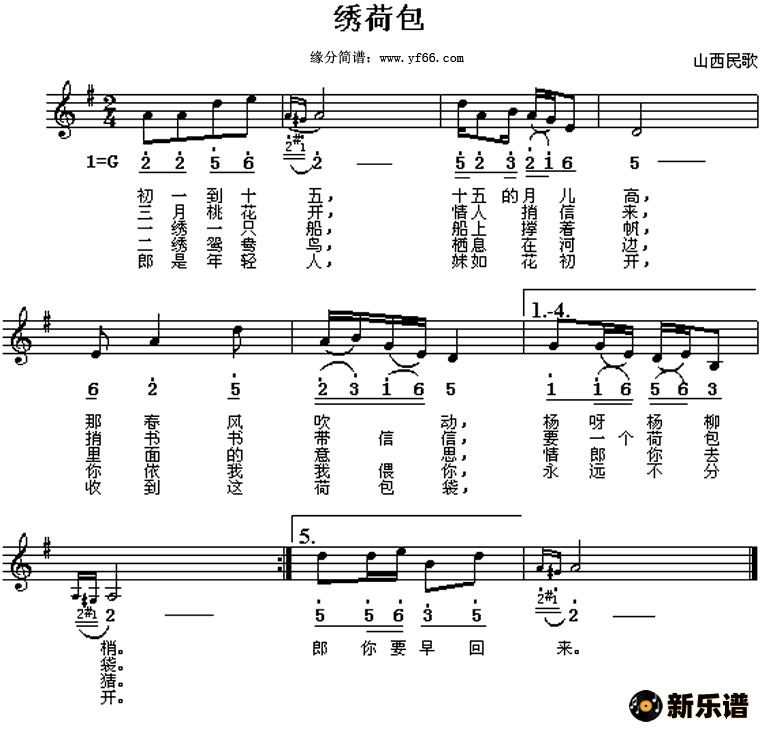 山西民歌演唱的绣荷包歌词,绣荷包简谱.