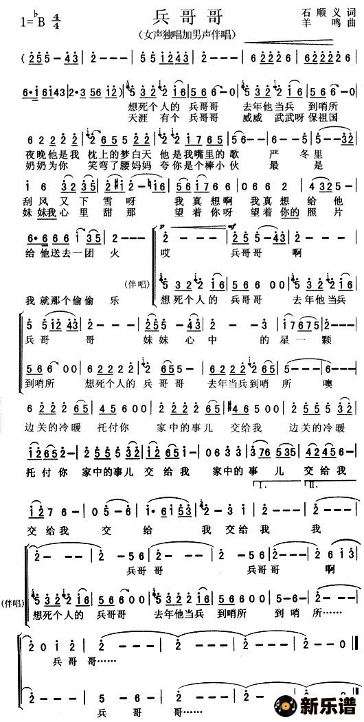 民族声乐考级歌曲:兵哥哥最新曲谱
