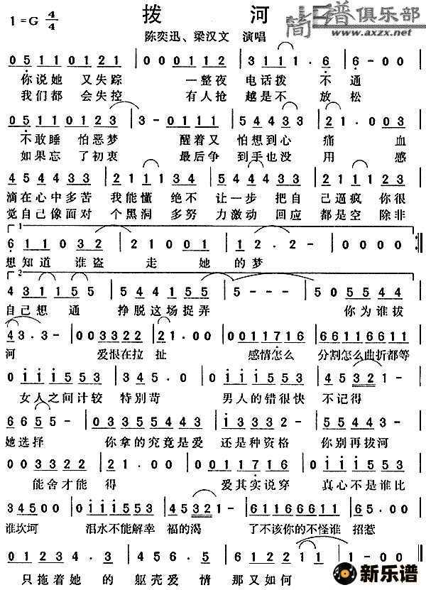 陈奕迅/梁汉文演唱的拨河歌词,拨河简谱.